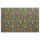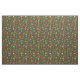Elegant fabric with forest pattern. Autumn and winter plants, branches, leaves, berries, mushrooms and birds on dark green background.