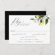 Elegant watercolor botanical lemon citrus fruit and floral branch, wedding RSVP cards with meal choice option. Back of card shown in black can be customised.
