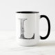 Customise this Hand-lettered L mug with your name. Originally created in pen and ink. This letter L is from one of my custom alphabets. Letter L, Alphabet, Calligraphy, Typography, Monogram, Flowers - Black and White ink art product.