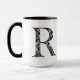 Customise this Hand-lettered R mug with your name. Originally created in pen and ink. This letter R is from one of my custom alphabets. Letter R, Alphabet, Calligraphy, Typography, Monogram, Flowers - Black and White ink art product