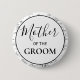The button features a clean, white center framed by a bold black circular border. The signature black and white botanical line art decorates the outer edge, maintaining the collection's sophisticated, organic aesthetic. "Mother" is showcased in a romantic flowing script, while "OF THE GROOM" is set in a modern, bold serif font for a high-contrast, professional look.