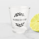 Botanical Olive Branch Monogram Wreath Personalised Shot Glass... A unique and thoughtful gift idea for a wife, mother, or girlfriend... a custom designed shot glass with a wreath of olive branches bordering the person's name in elegant serif typography. It's easy to revise the name on the personalisation template.