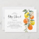 Invite family and friends to your baby shower with this botanical invitation. It features watercolor illustrations of oranges, lemons, orange blossoms and greenery with a matching citrus pattern. Personalise by adding the name, date, time, venue, address and other event details. This citrus invitation is perfect for garden and summer baby showers. Matching items are available.