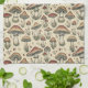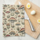 Botanical Pattern of Mushrooms in Brown and Beige Tea Towel