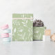 Delicate botanical pattern with leaves, berries, and flowers in white on a trendy sage green background. This Scandinavian-inspired design carries a touch of vintage charm, creating a calm and timeless aesthetic. A wonderful design for those who appreciate understated elegance and natural beauty.