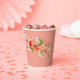 Refresh your guests with these delightful sweet peach baby shower paper cups. The design features lush watercolor peaches and spring blossoms winding around a soft coral background. These are the perfect tabletop addition for a southern-inspired garden party or orchard-themed celebration.