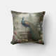 vintage botanical painting of a peacock standing on stairs in an English garden surrounded by pastel flowers