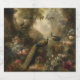 vintage botanical painting of three peacocks in an English garden surrounded by pastel flowers