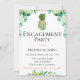 Watercolor botanical island flowers and foliage pineapple shape with matching arrangements, engagement party/shower invitation. Personalise text, customise font style, colour, and size. Back of invitation shown in living coral, can be customised as well.