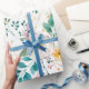 Botanical pink teal white orange floral wrapping paper