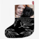 Botanical Print with Photo and Name Black Large Christmas Stocking