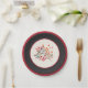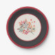 Botanical Red Berry Stripe & Leaves Paper Plate