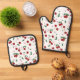 Botanical Red Cherries Greenery & Cherry Blossoms Oven Mitt & Pot Holder Set