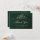 Botanical Roses Green Gold Royal wedding Thank you Card