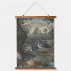Botanical scene of blue cranes by a river hanging tapestry