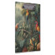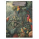 vintage painting of a botanical scene of colourful parrots and pineapples in a rainforest