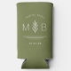 Botanical Stem Wedding Monogram | Olive Green Seltzer Can Cooler