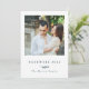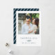Simple and elegant farewell 2022 photo card, features a lovely watercolor winter botanical and classic blue and white stripes.