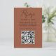 Add earthy elegance to your wedding suite with this terracotta-themed RSVP card, perfect for rustic, boho, or botanical-inspired celebrations. Featuring a soft terracotta background with modern black customisable typography, there's also a dedicated space for a QR code to make responding easy for your guests. The reverse side is adorned with a delicate ginkgo leaf pattern, tying your stationery together with a cohesive and organic feel. Ideal for autumn weddings, garden ceremonies, or bohemian events, this card combines minimalist design with natural charm.