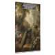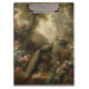 vintage botanical painting of three peacocks in an English garden surrounded by pastel flowers