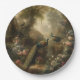 Botanical: three peacocks in English garden Paper Plate