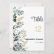 Watercolor dark green and gold botanic foliage Wedding Table Numbers invitations are perfect for any classy and elegant ceremony. This country chic stylish floral wedding invitation is perfect for any refined and sophisticated modern girl or anyone. This design is ideal for a trendy and elegant party event. Customise this design with your message and personalised information. All designs are printed.