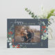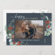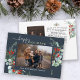 Botanical Watercolor Greenery Photo Blue Holiday Card