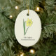 A light yellow ornament with a botanical daffodil flower illustration in pastel colours (Narcissus pseudonarcissus) and a customisable text: perfect for your Christmas Tree decoration or for a gift to a lover of flowers. Wild daffodil is the March birth flower, the flower of Pisces and Aries and is symbolic meanings of rebirth, forgiveness, creativity, energy and vitality.