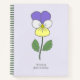A light purple notebook for school or work with a Botanical Wild Pansy Flower illustration in Pastel colours and customisable texts: perfect gift idea for a girl who love flowers. The back is purple with a customisable white text.