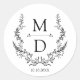 botanical wreath initials monogram wedding elegant classic round sticker