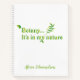 Elegant notebook printed with the Botanist quote 'Botany...It's in my nature'. Personalise the product by adding the recipient's name, or other words of your choice. Lovely green and white notebook. Great gift idea for botanists, plant scientist, or phytologist.