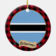 Botswana, Red buffalo plaid & Botswana Flag Ceramic Tree Decoration