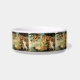 This is a heavy, durable bowl decorated with Tibbies of many colors, the perfect size for hungry/thirsty Tibs. The design is interesting and printing clear.