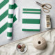 Bottle Green and White Wide Horizontal Striped Wrapping Paper