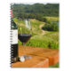 Bottle of red wine and glass on table notebook