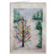 This blank greeting card may be shared or framed as a 5x7" picture. This card is customised from an image of an original watercolor by Avsec Arts. It shows a bottle tree in the foreground of a winter scene with a pastel chequerboard background.