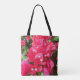The intense pink cascade of colours on this Tote Bag is an original photograph by ZoeSPEAK. The photo zooms in on a bougainvillea bush in full bloom, showing the tiny white flowers surrounded by the deep pink bracts which look like leaves, a signature of this beautiful plant. The green leaves of the bush form the background. This plant loves a warm climate.