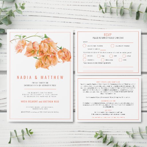 Bougainvillea orange watercolor wedding bar menu