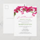 Beautiful realistic fiery fuchsia-red bougainvillea flowers on vines | easy to read simple design | wedding reception invitation postcard for elopement, no formal wedding ceremony