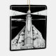 A black and white illustration of the lighthouse at the end of the boulder bank in Nelson, New Zealand. This lighthouse is at the cut near and has haulashore island in the background.