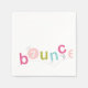 The bounce birthday party paper napkins feature an editable age inside of the O and a bounce graphic with hot pink, light pink, lime green and aqua blue letters. This item pairs perfectly with the bounce birthday party collection by Stacey Meacham. Click edit to customise.