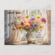 A beautiful mixed bouquet of flowers in a sunny window, with a cup of tea beside it in the morning makes a beautiful thank you postcard.