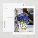 A postcard with the fine art post-impressionist painting, Bouquet of Parma Violets (1928) by Suzanne Valadon (1865-1938). A floral still life of lovely violets in a ceramic vase on a table. Valadon was a leader of the Parisian avant-garde movement.