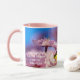 Bouquet of elegant sakura flowers, Japanese cherry blossoms on a tree. Pink and blue background. The joy of spring. Beautiful customisable coffee mug. You can change the image and you can change or delete the template haiku text. You can transfer this design to a variety of other products, including latte mug, glass cup, pitcher, teapot, chilli bowl, candy jar, water bottles, candles. Just choose the product from the scrollable option "Transfer design to a product". Do not forget to use the "Personalise", or "Edit design" button, or the blue link "Details" --> "Click to customise further" --> "FILL/FIT" to ADJUST THE DESIGN TO THE SIZE AND SHAPE of the product, to rotate it, to change the position, type, colour of the font, or to add your own text from the scratch. Just be creative and have fun.