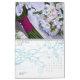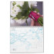 A customisable calendar to celebrate the year of your wedding. The front page features the unique "Bouquet Range" from Studio LUMIERE with a cream flowers set in the background in this photographic imagery with an overlay of the bride holding her bouquet of roses and foliage. Caligraphy script text with the word "Wedding" is watermarked in the base of the image. Text is customisable for the dates that the calendar commences and your names. Each month features one of the key details that make weddings beautiful at every sensory level: the flowers.
