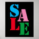 Elevate your store promotion with this attractive sale sign in colourful text against a black background. It is designed for business owners and retail shops to announce their sales.
