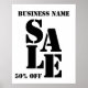 Elevate your store promotion with this sale sign in black and white. It is designed for business owners and retail shops to announce their sales. You can customise it with your business name and the discount offered.