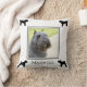 Add your favourite photo of your bouvier to this throw pillow, personalised with the name, and adorned with black Bouvier des Flandres silhouettes in each corner, shown on a white background. The background colour can be changed to suit any decor or colour scheme you choose.