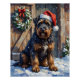 Celebrate the strength and warmth of the Bouvier des Flandres this Christmas! This rugged yet heartwarming painting features a majestic Bouvier, sporting a festive Santa hat, sitting proudly by a snow-covered barn door adorned with a pine wreath. Perfect for Bouvier owners, lovers of large working breeds, and anyone who appreciates a strong, protective presence in their holiday decor. Ideal for rustic Christmas cards, sturdy mugs, and gifts that capture the dignified spirit of this impressive breed.