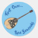 Greek bouzouki with three strings. Custom Text. First Ouzo... then Bouzouki. Light blue background.